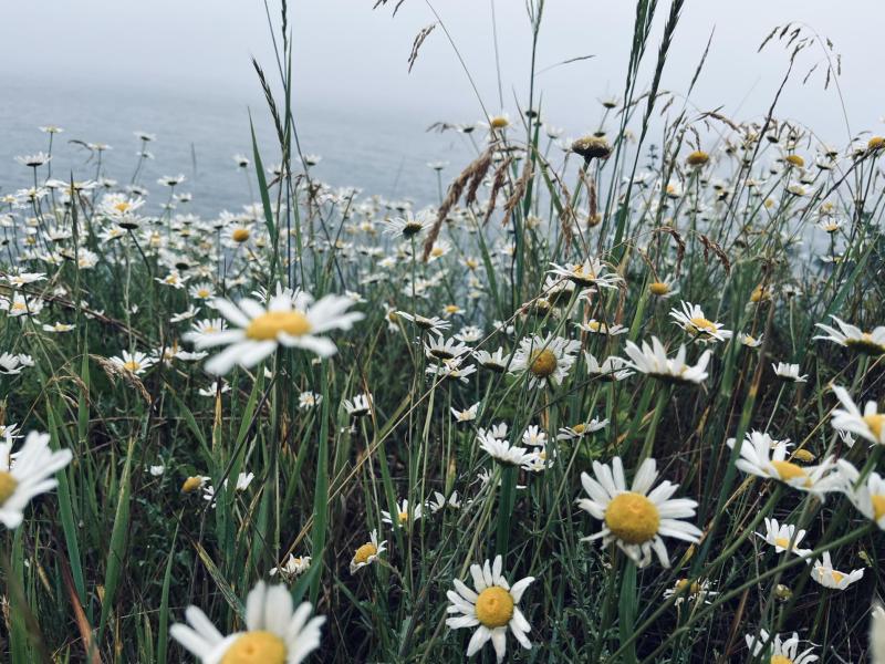 Imagine you are in a picturesque field. Are you surrounded by tall grass, wildflowers, or anything else? Are there animals grazing nearby? Any other people? Or just you? Using your preferred medium, capture the essence of this place. [Photo credit: "Daisy Field" by Amelia_v, YWP]