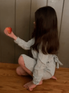 Another photo w/ my little sister modeling; She holds the apple that somehow made its way into her hands. The apple has its own story; just like everything else