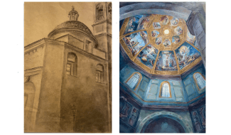 Therefore, this duality of my experience and historical context contributing to what is now seen is reflected in a diptych of the exterior and interior of the Basilica di San Lorenzo. I highlight my feelings toward the Basilica by portraying an unassuming exterior with charcoal and brown paper for an emphasis on its antiquity. And, for the inside with intricately painted detail in my drawing as I wanted to capture the splendor as well as labor of the chapel. With my piece, I strive to capture San Lorenzo’s long history as well as its effect on viewers now.
