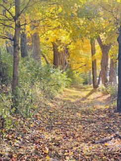 A trail wrapped in autumn light, where every leaf feels like a warm whisper from fall.