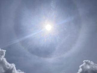A halo is an optical phenomenon that looks like one or two rainbows in a ring around the sun! This is unedited.