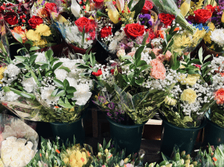 I spent the day in NYC with a friend and saw this wall of flowers outside a small neighborhood deli. I loved how colorful they looked in the sunlight.