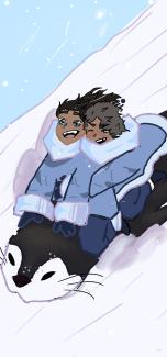 These are my two ATLA inspired characters celebrating December that is coming closer, they are going penguin sledding!