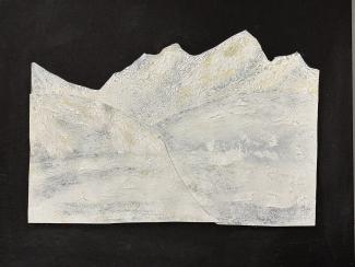 Whispers Of The White Peak evokes a peaceful and calming sensation. Whispers of the White Peak shows where I have grown up; I have always been around mountains, and they will always hold a special place in my heart. When you look at the painting, you should just see mountains. Once you take a second look, you can see more depth. It appears that the mountains are drawing closer. I chose to use oil pastels and paint for this piece. I started with an oil pastel base, then layered paint on top. To give the paint a thick, snowy texture, I mixed in baking soda before applying it. As the mountains appear to get closer, I added more paint to enhance that effect. For highlights and shading, I used grey and yellow tones. This painting draws from a recent moment when I observed a snowy landscape and was captivated by the delicate colors emerging through the textured snow. The quiet interplay of hues beneath the surface inspired me to capture this scene.