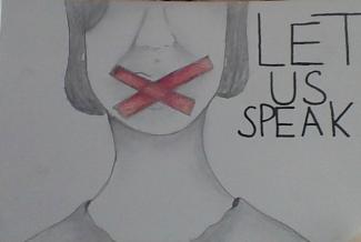 This drawing is a true reality formed into a drawing of women having a hard time in speaking with limits. It shows how women are held back and forced to stay silent with screams too quiet to hear. It paints a true and sad reality that nobody is strong enough to talk about.
